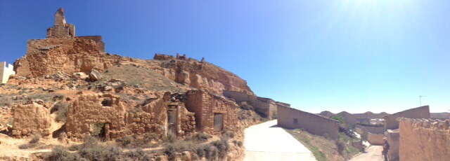 En route to Medinaceli, Sophie spotted a couple of distant castles and so we took the mandatory detours. In the first town we came across this way, walking through it felt like what being in some parts of South America might feel like, with the heat, run down houses, and with heads looking around doors at us strangers. I’m not sure if Crocs and safari hats had anything to do with it, but we smiled and offered our “holas”, to those few braving the heat of the middle of the day.