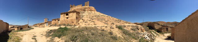A very peaceful night just outside Belchite. A campervan did turn up but they parked a long way back, which in turn made us wonder whether they knew that the church bells right next to us might be a problem. As it turns out there were no bells between midnight and 8am. Result.