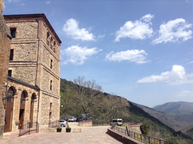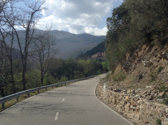 Next point of interest was Mansilla de la Sierra, where the original village had been flooded by a rather large reservoir, and the village rebuilt further up the side of the valley. When water levels are low you can still see some of the original buildings. Sophie showed me the top of the sunken church to prove this point. Just after the village we pulled over for a feta salad, then moved on the “Monasterio de Valvanera”, which is set high up in the mountains.