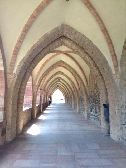 As we approached San Millan de la Cogolla, where the monastery was, the landscape became a vast rolling plain, surrounded by distant mountains. On arrival at this town, the Satnav and me did the usual trick of driving straight through the ancient narrow streets rather than wait for the proper signs. The only restriction was 3m height and 10 tons, and as we were within those parameters I persevered, and all was well. This usually gets us strange looks from the locals, but we’re now beyond worrying about such things.