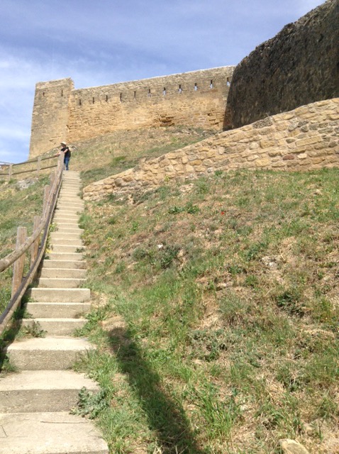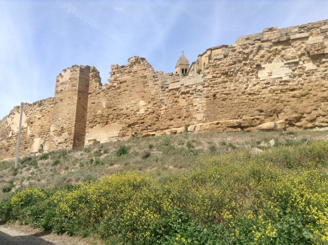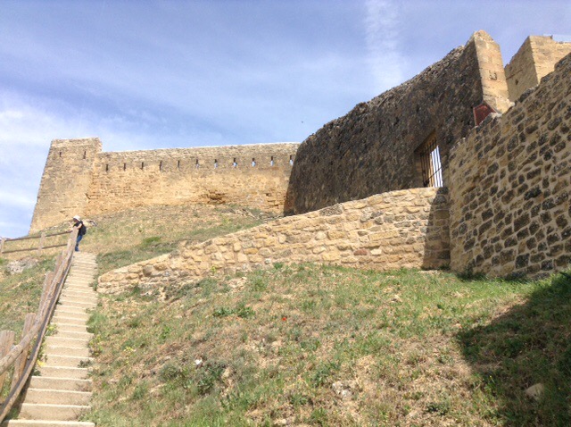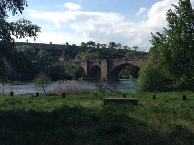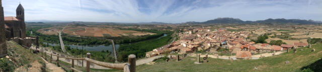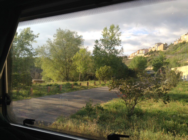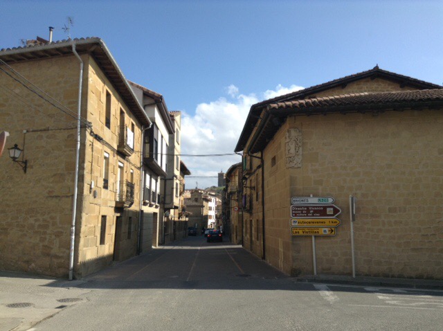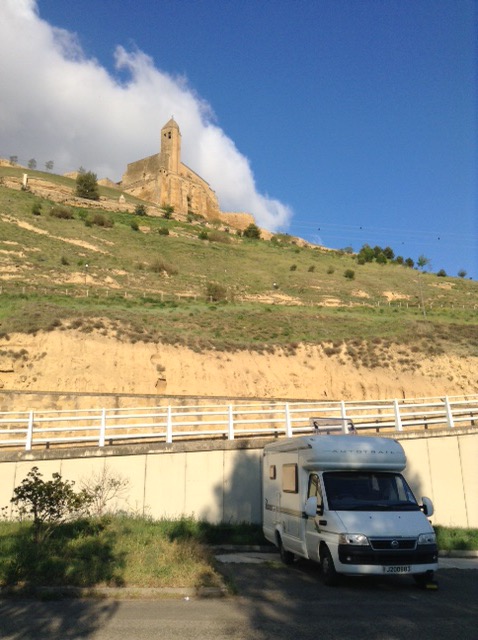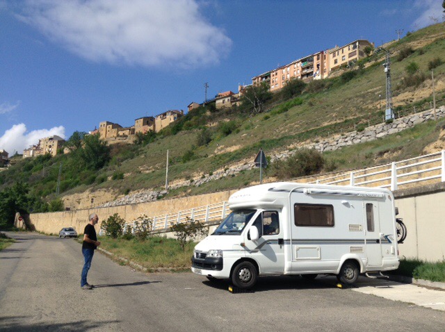 Our stop is from “All the Aires Spain and Portugal” and is highlighted by the authors as being better than most, due principally to view or surroundings. So here we are at San Vicente de la Sonsierra, with a river and medieval bridge in front of us, and only two other motorhomers so far, with our usual exaggerated gap between us and them. Apparently catfish fishing is possible here, but after all our exertions of the day we may pass on that option this time.