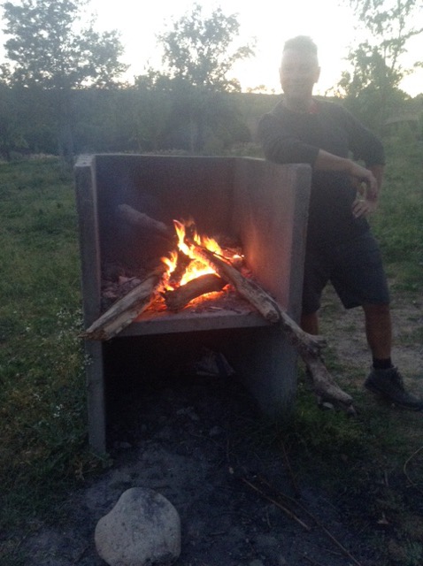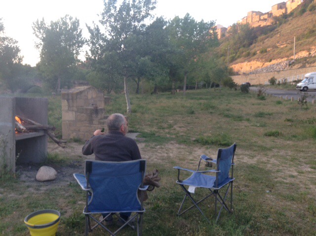 As it happened we were delighted to see a British couple arrive and we agreed to have drinks after they’d eaten. Amazingly they’d just been motorhoming in Morocco. Andy had noticed the barbecue area, which is a common feature at picnic spots in Spain. This consisted mainly of a concrete structure. Being a scout leader, he in no time found an impressive pile of wood, all graded from kindling material right up to discarded tree trunks, well almost, the latter having to be left to burn through in order to ultimately be able to be broken so that they would actually fit onto the fire properly.