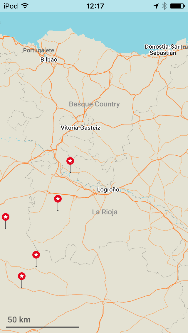 Progress as follows. Pineda is the most Westerly point shown on the map and you can see that we have travelled North-East, then continued in a South-Westerly direction: