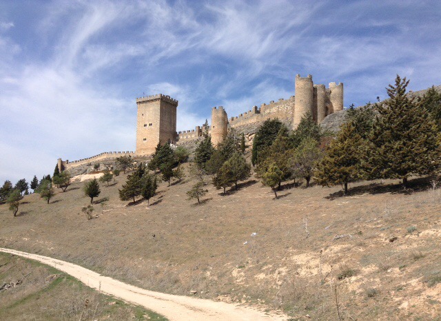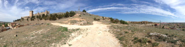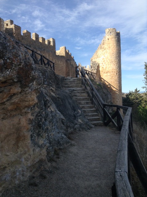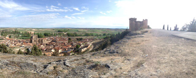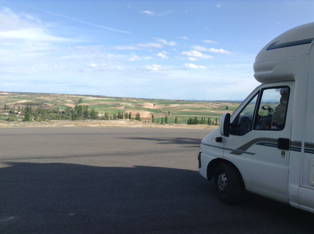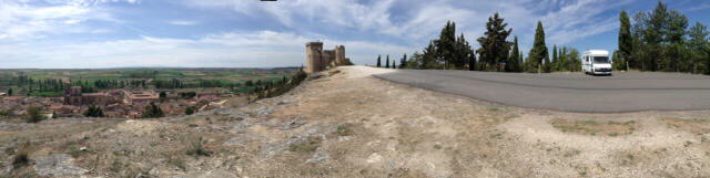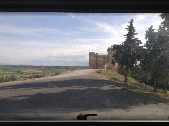 Next on the agenda was Penaranda de Duero, where an imposing castle overlooks the town. Maps.me indicated a carpark next to the castle, which was too tempting not to check out as a potential overnight stop. By 8:15pm, we’d had our evening meal, so decided to give it a go. The castle closed at 8pm, so we were prepared to be advised by the departing member of staff that overnight parking is not permitted, but no-one paid us any attention. The wind was picking up though and we were very high up, but we stayed anyway.