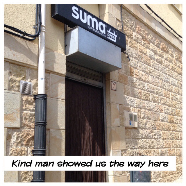 We headed into town mid-morning next day for some exercise and some sight-seeing. Worth a visit, as well as a chance to get some bread. We saw people with bread so we knew it had to be on sale somewhere. We tried the fish shop/grocery store, but nothing there. Then we thought it might be in the butchers again & so Sophie asked an older chap who’d just come out. He said he’d take us and said he spoke French, which was handy. Similarly to the previous day he pointed at a door and said that’s where we’d find our bread. Then we noticed the most subtle of signs saying “supermercado”, so we descended into a subterranean mini supermarket where we found what we were looking for.