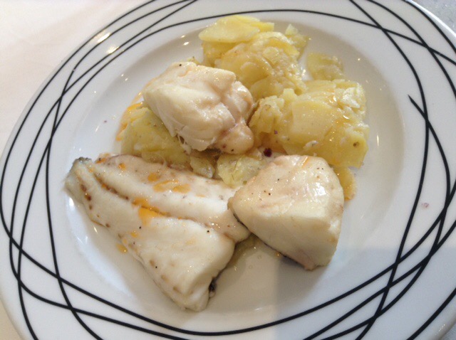 Second courses were white fish with fried potatoes, and hamburger with deep fried vegetables. The latter was a compromise, a back-up plan for Sophie, but in fact I ended up having to eat most of it. Anyway, once Sophie’d relaxed into the pleasant ambience of the place, the good service, and the excellent company, all was well.