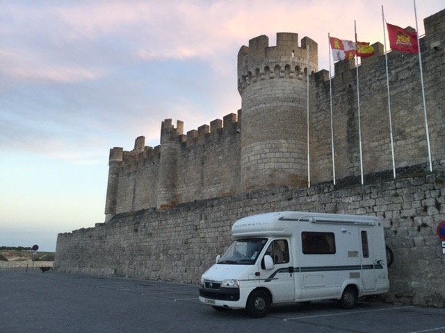 Next stop was the larger town of Aranda de Duero, where we stocked up at Lidl after over a week without seeing our favourite shop. After much research I’d found the well-reviewed aire in the town. It was at the side of a carpark, but had plenty designated bays, plus all the facilities, and it wasn’t at all hemmed in by buildings. Interestingly this is the first time so far in Spain we’d seen an aire where the water wasn’t free. They wanted €1, which actually is unnecessary given the freely available water in virtually every village we’ve been through over the last few weeks.