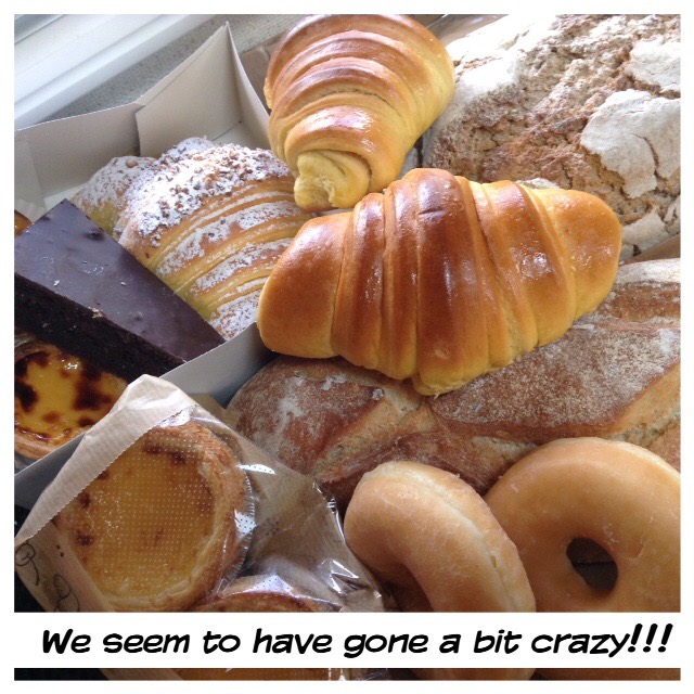 So I took my life into my hands, and learnt first hand, and right up close and personal, just how fast most seem to be driving on these more minor roads. Arriving at the bread/coffee shop in one piece, I boldly tried the bread word again, and I think I must be perfecting it because she pointed at the rolls. I played the “Ingles” card again and did lots of pointing. As tomorrow is a local holiday we’d agreed I’d buy two loaves, and once chosen the lady tilled me out. However, by this point I’d also noticed the array of lovely Portuguese cakes behind the glass, and after over a month of Spain, where the cakes generally didn’t inspire us, I couldn’t help myself and bought a range of them.