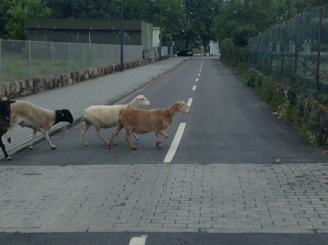 Just prior to the services, four scraggy sheep were looking a little lost on the road, and I suppose a bit sheepish too.