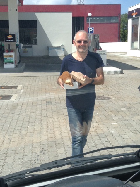 Being a Sunday morning we were on the lookout for a bread shop, but every time we saw one, there was someone right on my tail, or there was no viable parking, or usually both. Having learnt the trick of trying a petrol station for bread, Sophie sent me into a Repsol station. After clearly pronouncing “pao” incorrectly I used the fallback word “Ingles”, at which point the attendant told me in English that just down the road I could get bread from the coffee shop. When he saw me get back in the motorhome he ran over to say that I could actually walk there.