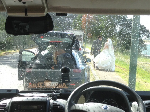 Our coffee stop turned out to be at the mouth of the Rio Miño, overlooking Spain, with great views. As I was writing this, a bride and groom in full wedding regalia walked past our motorhome window, and a car full of photographers pulled up in front of us. Clearly they realised that if this view was approved by Sophie, then it must be a worthy background for their wedding photos, which will hopefully last them a lifetime. First attempt was aborted as the heavens opened, but a few minutes later the sun came out fully and a wedding shoot along the boardwalk next to the river ensued.