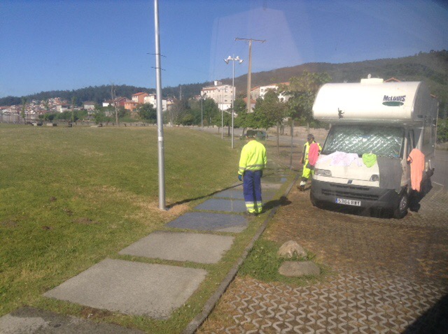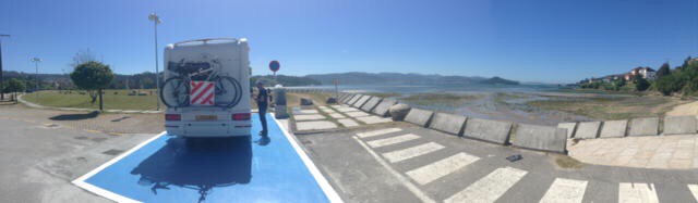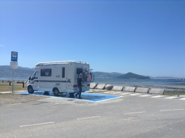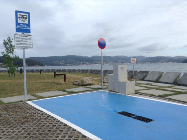 Ultimately though we arrived at the large town of Pontevedra, to begin our Dorling Kindersley’s Backroads of Spain’s drive number 1, “Medieval Treasures and Golden Bays”. I’d only just found out earlier today that Pontevedra had a shiny new motorhome aire and so thought this would be a lovely end to the drive. We found it but the entrance was a challenge. After two circumnavigations to check out every possible way in, we decided against it anyway because it was packed and we’ve never been keen on playing sardines.