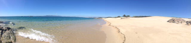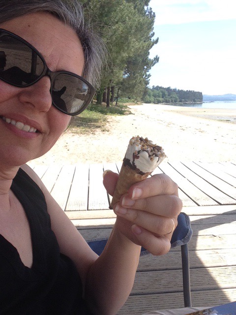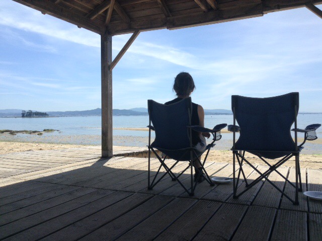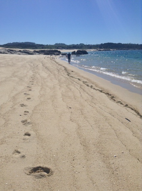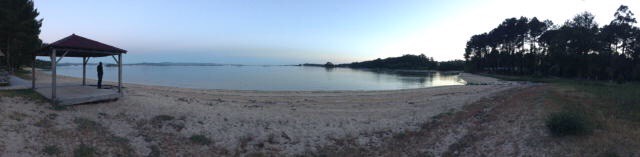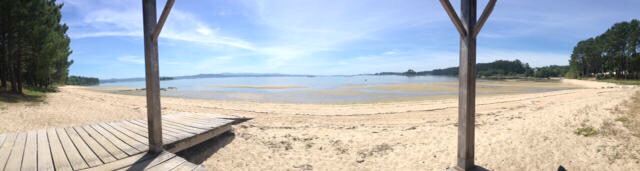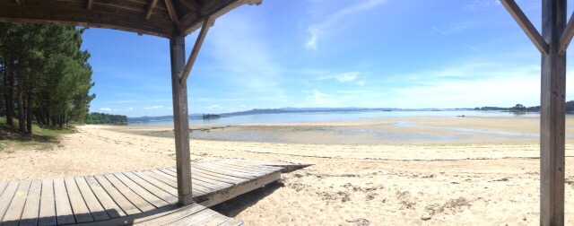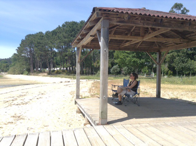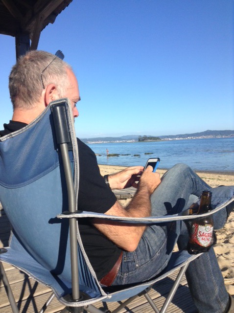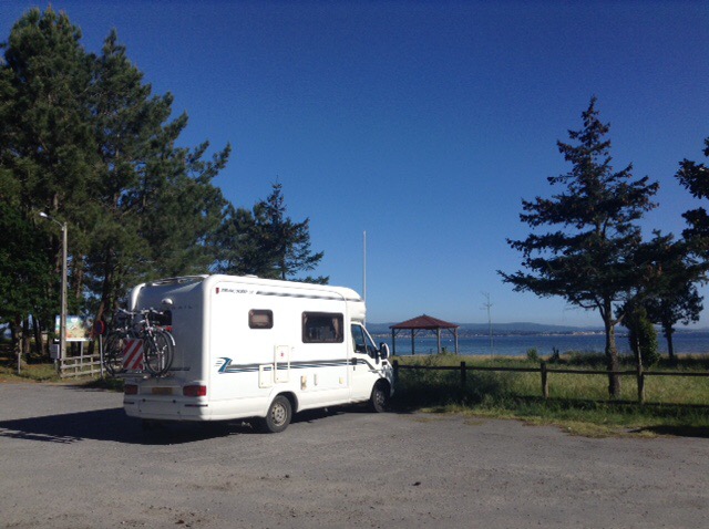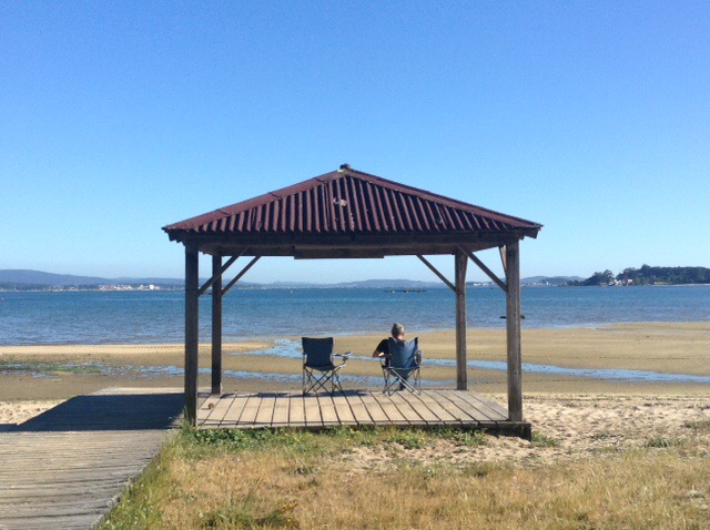 Being just a little too early to stop we moved on and now find ourselves at a secluded beachside spot near to the town of Boiro, sat on our chairs, in the sun, watching the tide come in with a great long view across the sea to the land beyond.