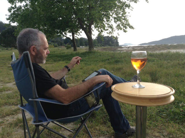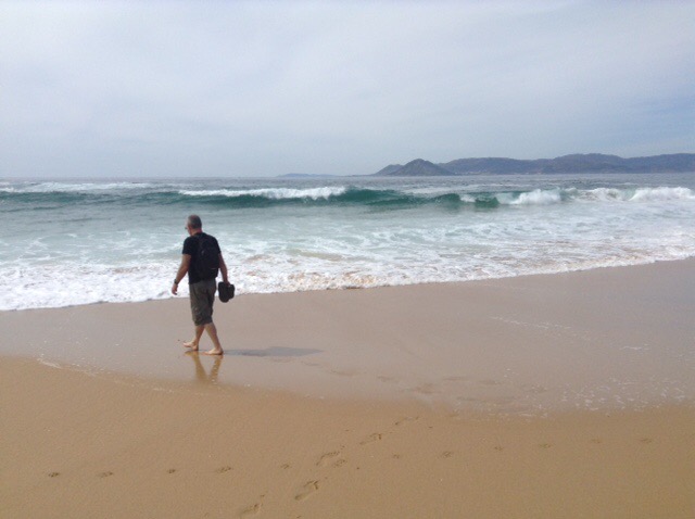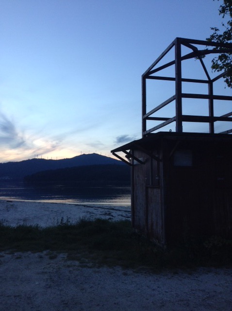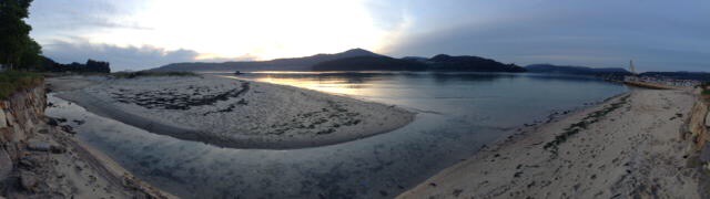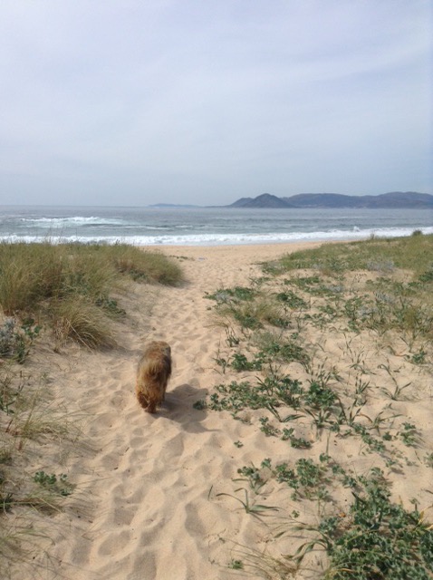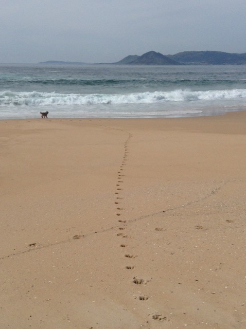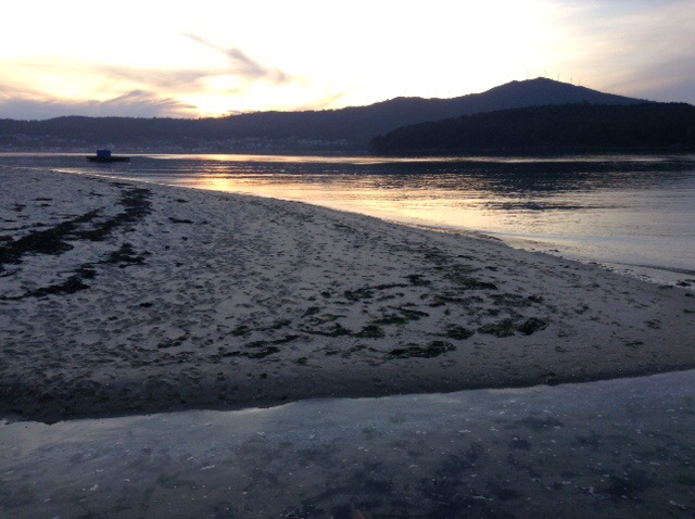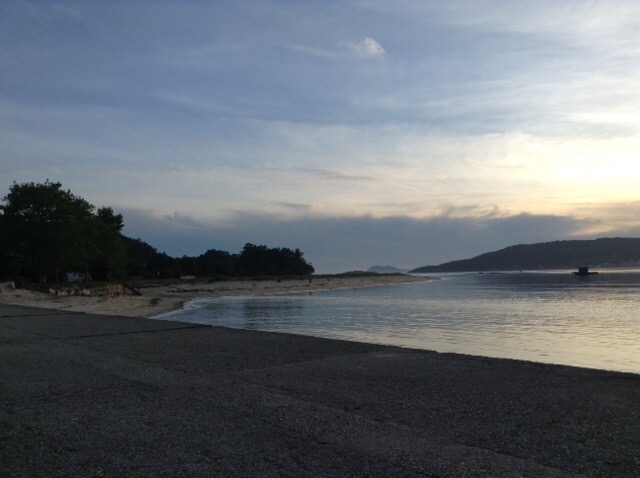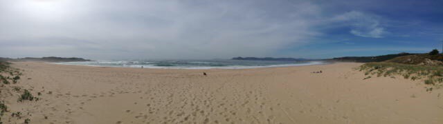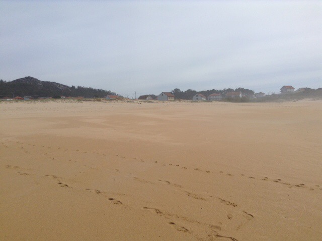 Before long we found ourselves near Noia, at virtually the far North-Eastern end of this Galician promontory. We’re on our chairs again, a rare luxury in Spain, and have the beach, with dunes in front of us, then an estuary, with the final North-Westerly corner of Spain beginning just over the water. There is a road bridge not far behind us, but Sophie was keen to stay, so that’s good enough for me and it doesn’t seem overly busy with traffic.