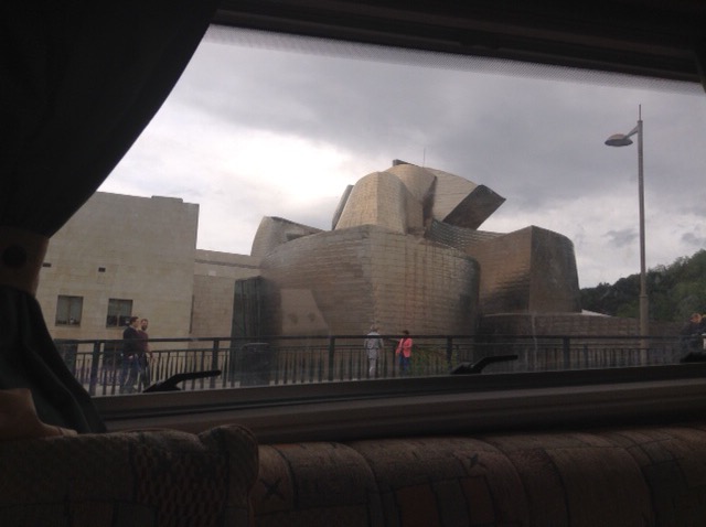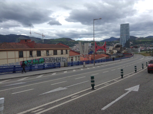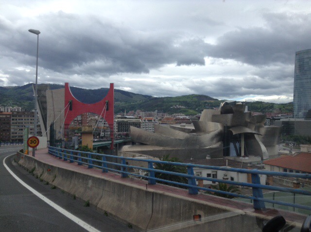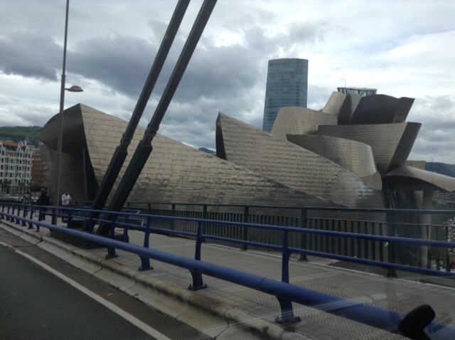 Even approaching Bilbao itself it was clear that this was a particularly large and sprawling city. I had always wanted to see the Guggenheim Museum and so thought it would be rude to not at least pass by it. I so dislike driving in towns, and cities I’d rather avoid altogether. Fortunately, the Satnav lady got us, eventually, within spitting distance of the amazing museum building, and I was able to give it the once over when fortunately stuck at a red light.