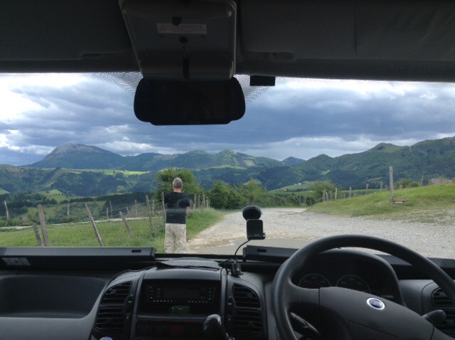 We then reached the coast at Deba, and I headed for a Park4night picnic area that was about 1.3k off the main road along a very narrow road that became even narrower. Encouraged to continue by a big shiny sign we kept on going and found an absolutely cracking spot for lunch (at 4:40pm) with incredible mountain views. I think we’d have stayed the night if it weren’t for tomorrow being Saturday and the increased prospect of meeting traffic on the way down.