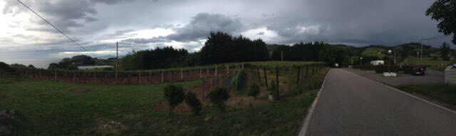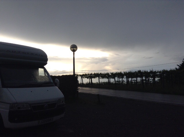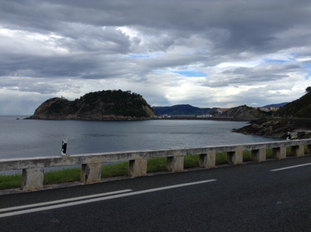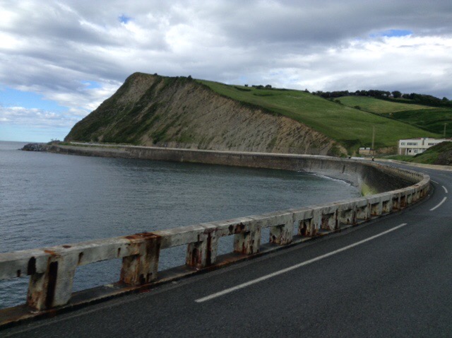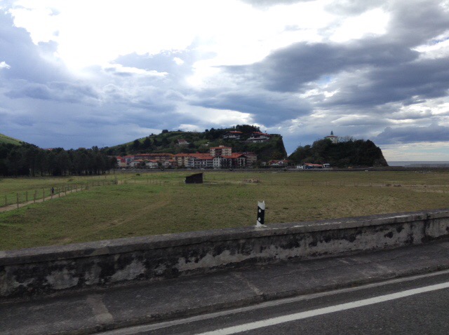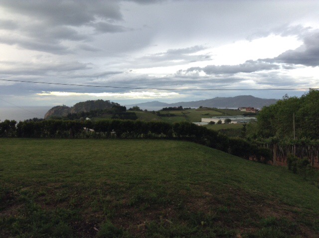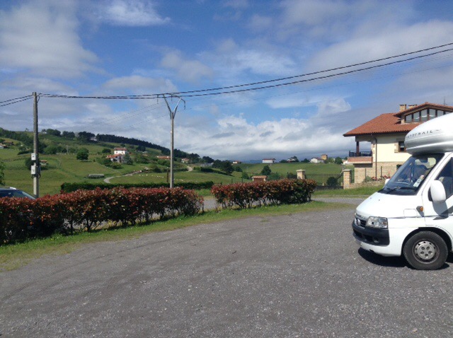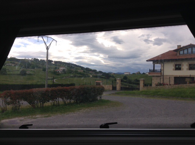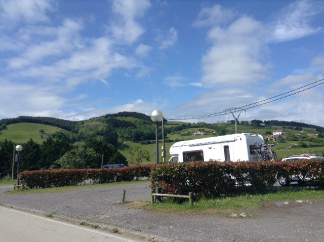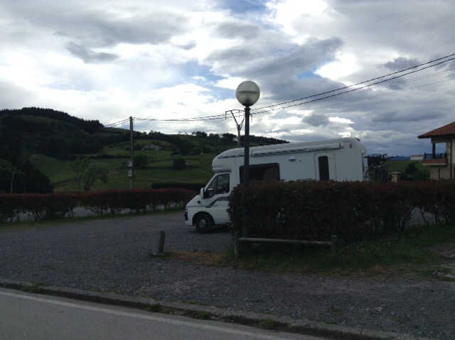 After this town, the road opened up into a very nice coastal route and my next option was a Park4night 1k up a side road. It seemed wide enough for two cars, just, so we thought we’d have a nose. So we’re now parked in a rural carpark with great green rolling hill views to the front of us, the sea behind, and some rumbling thunder in the background. Nearest town is Getaria.