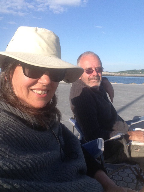 So we’re now on our chairs, marina-side and we’re enjoying cake (Sophie), nuts (Sophie and Michael), and a San Miguel beer (Michael). Who knows, we may even bring out our pasta supper to eat al fresco later.