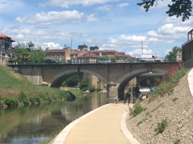 Next on the agenda was Mont de Marsan. Park4night informed us that we could park near the bullring and we should ignore the “motorhomes will be towed away” signs, because that only applied if you overnighted there. Maps.me guided us into the town, which was admittedly more modern than we were expecting, but the Tourist Information lady guided us to some ruins, “a beautiful dungeon”, and a riverside walk, so all was not lost.