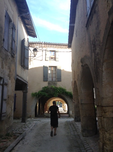 With such high temperatures we were very much looking forward to eating outside in the bastide town’s delightful cloistered main square, as we’d done last time. What we love about this tiny village is that there’s not much more to it than a couple of parallel streets surrounding the square. It’s attractive, unpretentious, honest, unspoilt, and has none of the usual tat on sale.