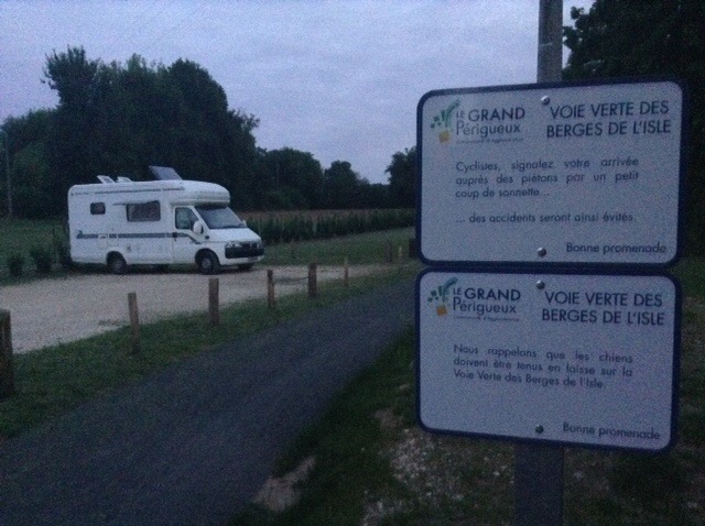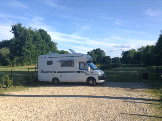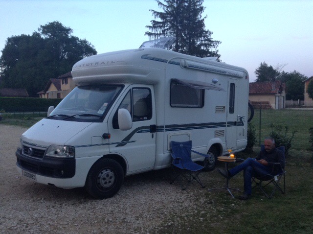 Busy morning next day. Very hot with a repeat unseasonal 30C that continued relentlessly until the sun finally lowered in the sky. We departed at lunchtime and it was a delight to drive with the windows open and hit the open road to cool down. We enjoyed the lovely straight Gascogny minor roads and pushed further North, passing through Bergerac, stopping for a late afternoon coffee at the very nice aire at Lembras, then heading in a Perigueux direction, where we roughly are now.