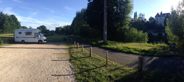 My first Park4night attempt had Sophie asking me where on earth I thought I was taking her. The heat, and the very winding route the Satnav latterly chose for us, were clearly taking their toll. I suggested we look at option 2, which was a bijou parking area next to a waterway and walking/cycling path, opposite a chateau. Perfect you’d think, but as it was still 30C Sophie was unable to make her mind up, asking me why we didn’t use aires much these days. Realising at this, that the heat must be getting to her I strongly suggested I put a chair for her outside in the shade where it was notably cooler than in our hot motorhome. Before long she was happy again, realising that I’d in fact found her yet another idyllic overnighting spot.