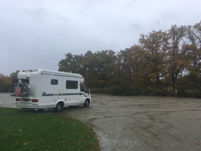 Our next stop was a coffee break at Les Perles, near to Averton. We’ve overnighted here twice in the past, and the last time was with Kenny & Tanya, where I recall we were barbecuing sausages. En route it had been pretty much non-stop rain, but the sun came out when we arrived and stayed out for most of the day. We made our usual circumnavigation of the lake and then decided to have a simple lunch.