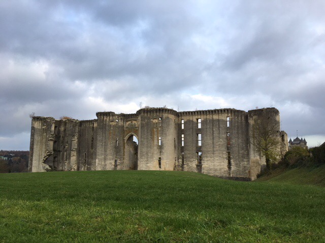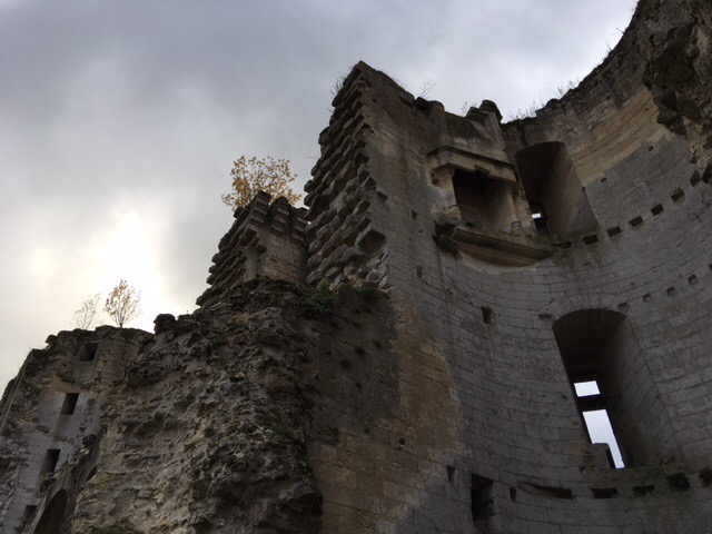 Before long we found ourselves at the impressive ruins, with an impressive view out across the town and countryside. Viewing the castle from its front, the common sight of decapitated statues were indicative that it predated the Revolution, which I’ve only recently ascertained. That or empty spaces where any kinglike statue may have stood, is quite common on castles and cathedrals over here.