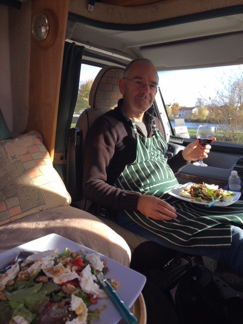 Plenty of lovely Winter sun when we woke in Laon. It was a hair-washing day for Sophie, which also means our smalls get a wash too. Once these were done they enjoyed the sunshine too as they were hung outside on twirly driers on the bike rack.