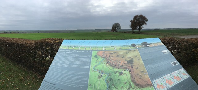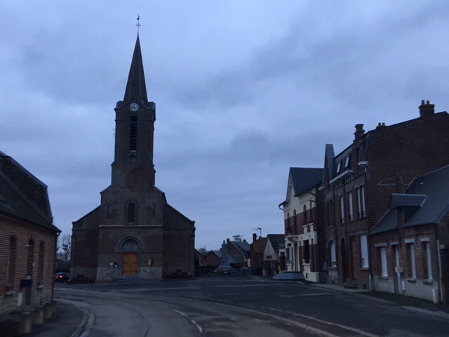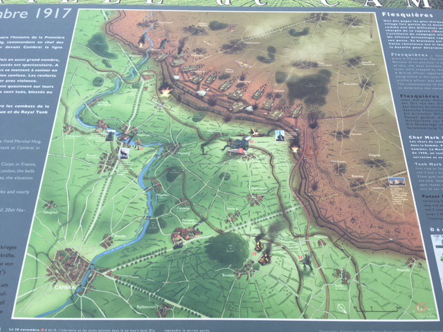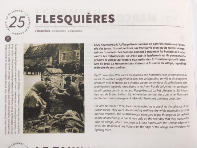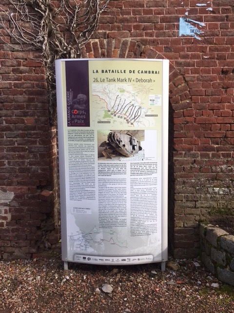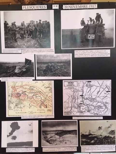 This morning we thought we’d head to the nearby village of Flesquieres, which had been a key position during the Cambrai tank battle. We understood that there’d been a photographic exhibition in the village church the previous day and hoped it would still be there.