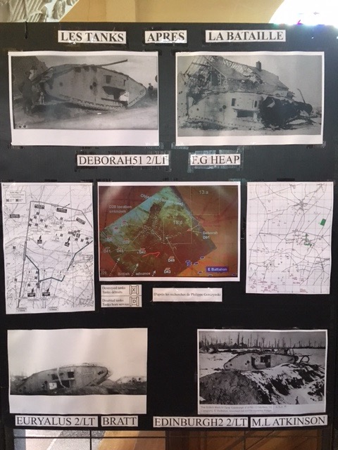 We arrived in time to meet a local enthusiast on the subject, just as he was beginning to put his exhibition away, but he kindly let us see the photos, and we had a good chat in our best Franglais. Whilst there, someone else whose great uncle had died during the battle arrived and so he joined in too.