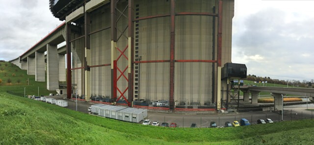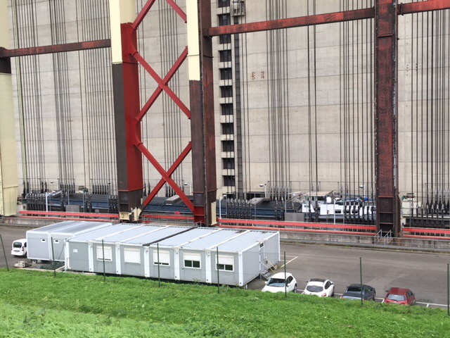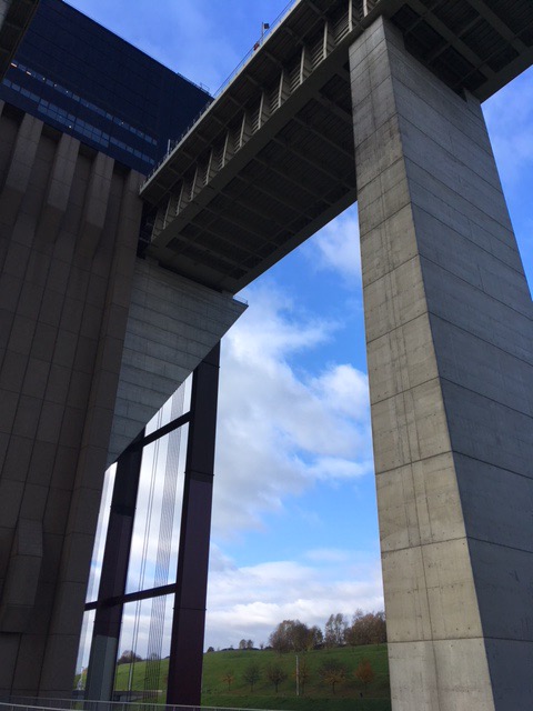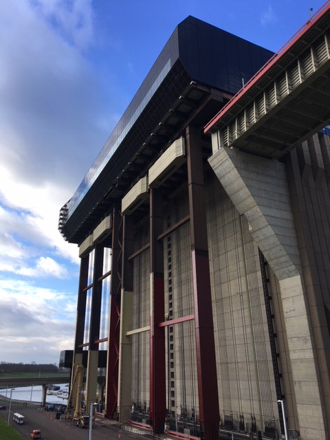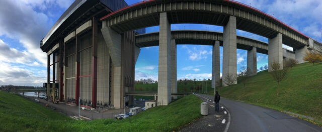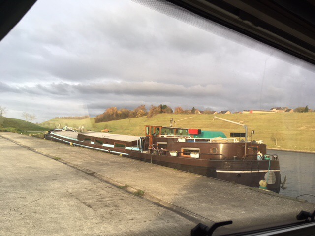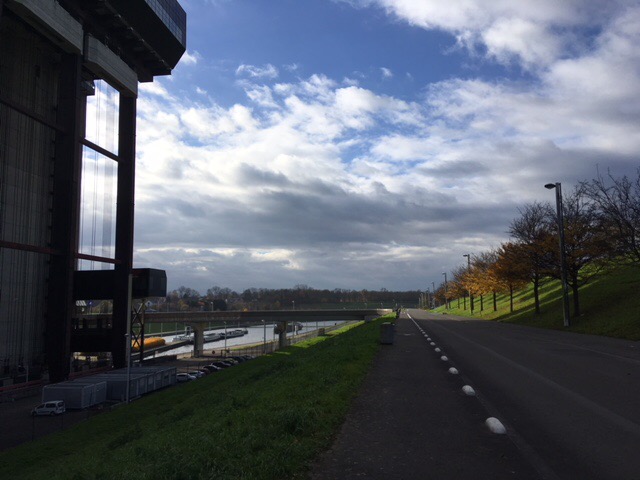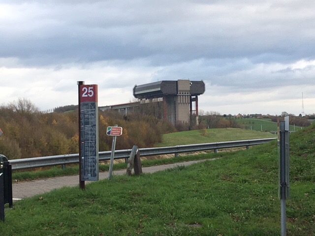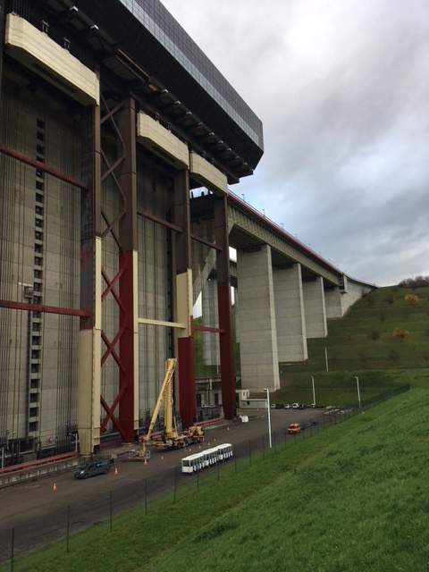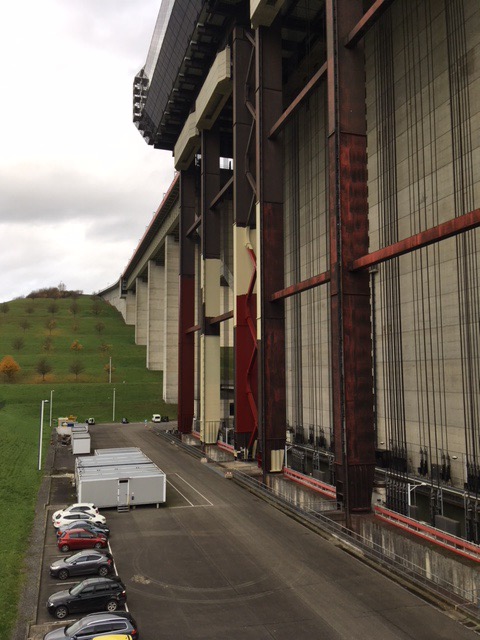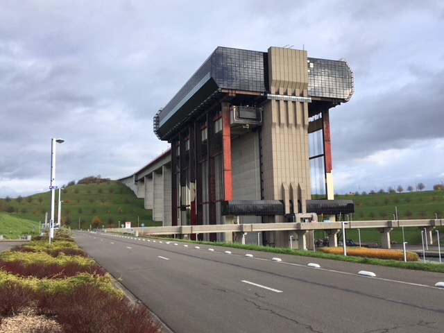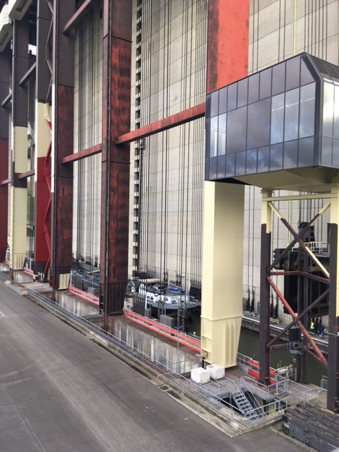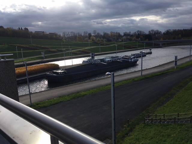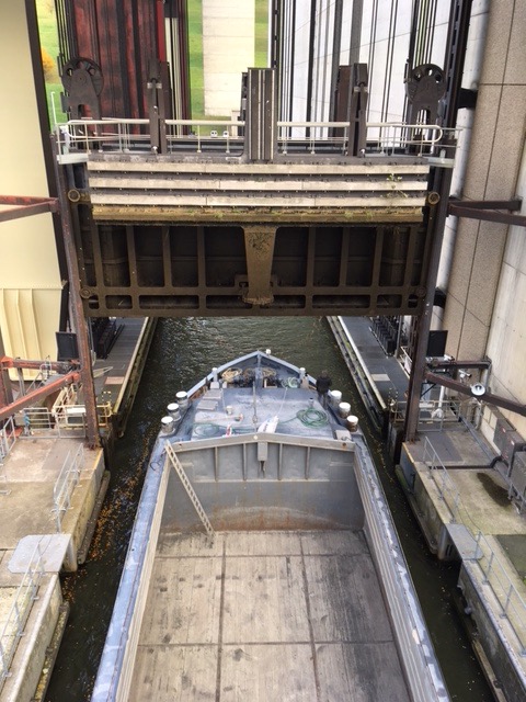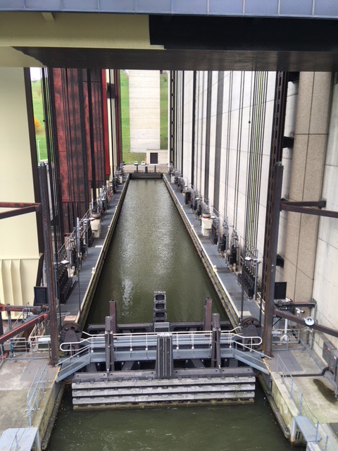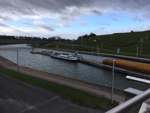 First on today’s agenda was the vast canal boat lift at Strepy-Thieu. It was the biggest in the world until the Chinese built a larger one. We strolled round the enormous structure and were even fortunate enough to see a large cargo boat being hoisted 240 feet up to the higher level.