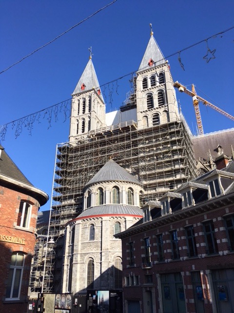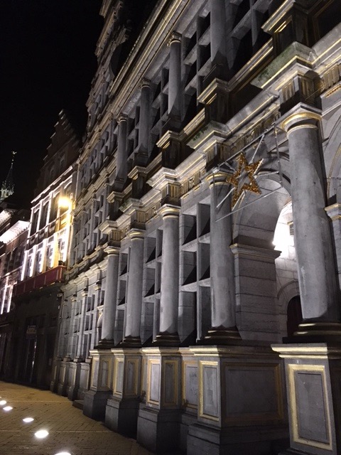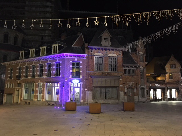 Last night we went for a town stroll, on the basis that the centre was only a 5 minute walk away. We’d read an online newspaper review that said if Bruges was Belgium’s Venice, then Tournai had to be Belgium’s Sienna, and that it was a must see at night. This is high praise, and to be fair, not far from the mark. A lovely place to visit, with wide streets, tasteful historic architecture, impressively “dressed” small shops, restaurants, and bars, and beautifully lit in the evening, and this is pre-Christmas lights.