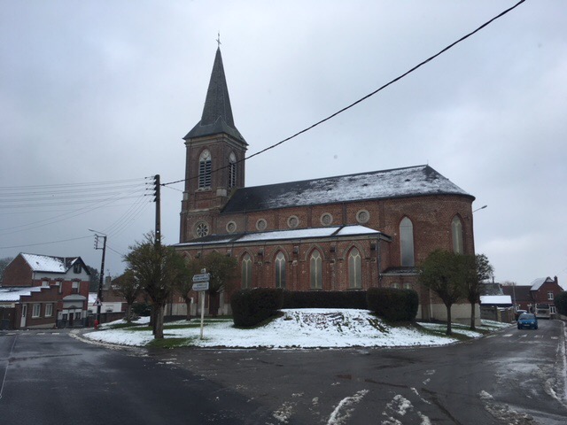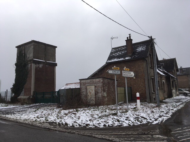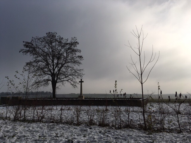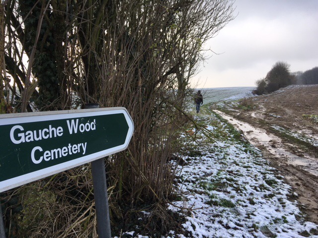 We then drove past Revelon Farm, where Edward was based the night before the battle. Then finally we headed to Villers Guislain for the main purpose of our whole trip. Just outside this small village is Gauche Wood, and it was as Edward came out of the wood that his tank was hit by a German shell, and he died instantly.