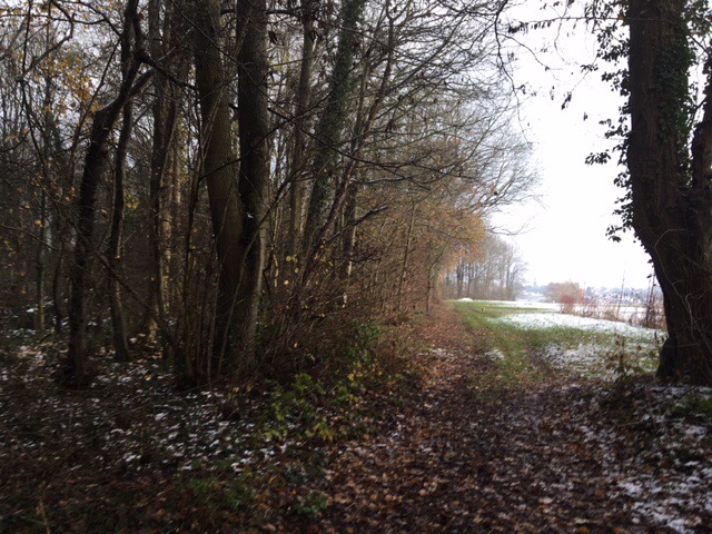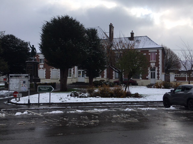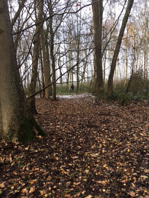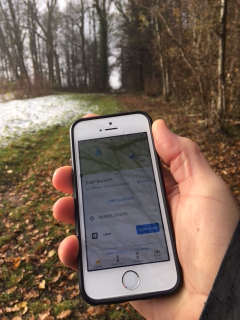 We had been given some coordinates of a very likely burial spot for Edward, and so after parking in the village centre, walked up to and then deep into the Western end of the wood armed with the maps.me app. The last 10 metres or so were jungle like with thick brambles and fallen trees, but we persevered and pinpointed the location. We left a poppy wooden remembrance cross that someone had coincidentally kindly given us in the village as we were about to set out.