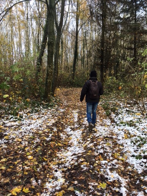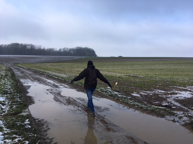We then took a stroll through the whole wood and emerged very close to where Edward would have left the wood in his tank for the last time. Although very cold, the conditions were almost perfect, with snow on the ground looking lovely, and bright sunshine providing ideal lighting.