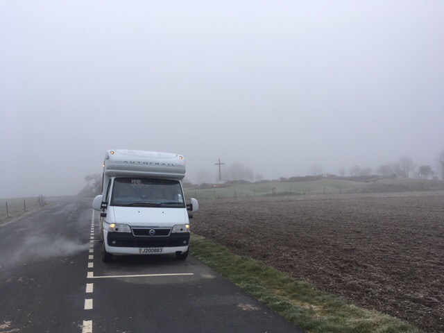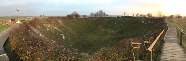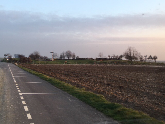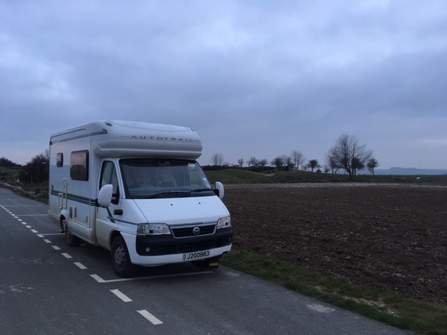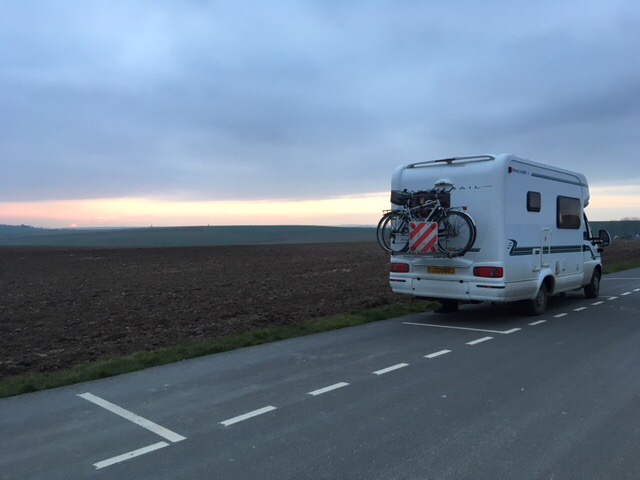 After Louverval, we drove to the Lochnagar Crater at La Boisselle. Vast underground explosions marked the start of the Battle of the Somme on 1st July 1916, and this crater still remains. It’s a very understated site, and at the end of a dead-end road. It was around 4:30pm, the deep orange sun was beginning to set in the distance, and it seemed the ideal place to stop for the night. There are distant views from here, and it was bitterly cold outside, but the heating was racked up in here, so we were warm as toast. Paella, courtesy of Lidl, was on the evening’s menu.