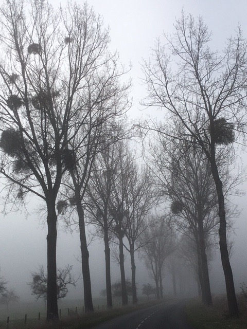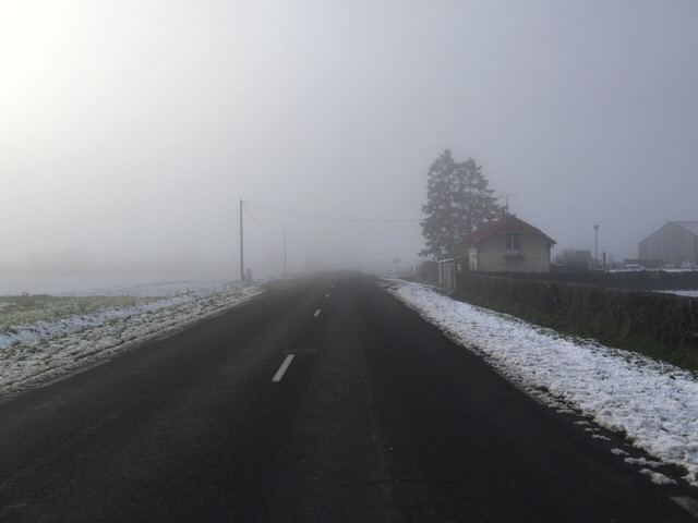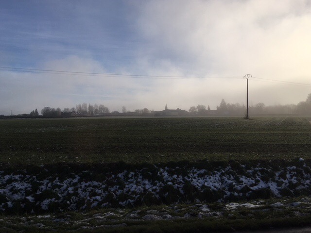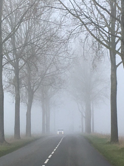 Next stop was a basics top-up at Lidl, followed by a very foggy drive until a lunch stop next to a lake, as the sun came out. The temperature rose to 4C, but once back on the road we were soon in fog again, with the thermometer back down to 1C.