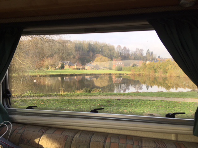 We’re now back in Normandy, and pretty much North of Rouen, in a small town called Mesnieres en Bray in their very pleasant and well-reviewed aire, with very lovely country and hill views. Our only neighbour is an English couple, also in an Autotrail.