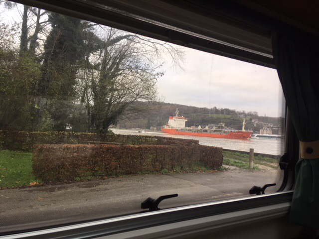 After a thoroughly peaceful night we then enjoyed watching the large boats passing on the river in the morning.