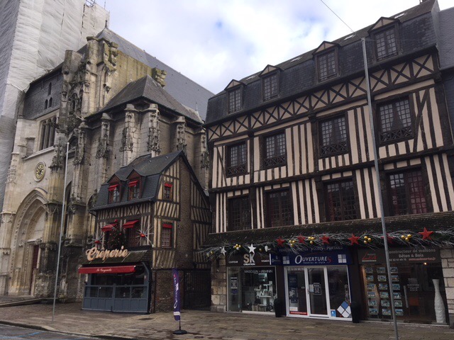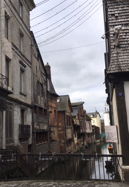 So I reluctantly agreed to visiting Pont Audemer, and only being a modest 6 metres in length, we readily parked very centrally to the small town. Plenty of half-timbered buildings and picturesque waterways were appealing, but by this stage I was entering “hangry” territory and, to use Sophie’s terminology, I found the place “perfectly pleasant”, ie it was OK. She was more complimentary about the town than me.