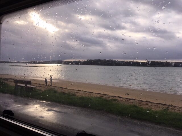 What a lovely night’s stop. The wind and rain outside, nice and toasty indoors, all with the constant lapping of the waves outside the bedroom window. One neighbour last night, a white van.