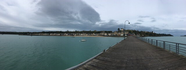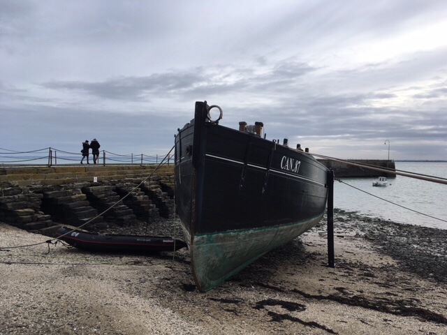 We found our ideal restaurant, L’Aviron, which met all our requirements. However, there was still no space at 1:30pm. They said they stopped service at 2:30, and we could see that some were definitely getting to the end of their meals. So rather than just standing outside with our noses pressed against the restaurant window, we headed across the road to the sea wall, whilst watching the restaurant door like hawks. It opened and out came a couple, I shot over to check there was a free table, then signalled to Sophie to get over here pronto.