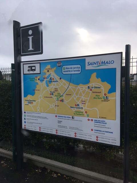 So we headed to the walled town of St Malo, but via the motorhome service point to dispose of our waste and top up with free water. After this we found the motorhome parking which is located in the principal road that heads due South-East from St Malo’s main entrance (Avenue Louis Martin). I’d always been a little concerned about access to this parking as it appears to involve driving between a row of parallel parked cars and a hedge, with minimal room for error. One poorly parked car would make access impossible, and we’re pretty narrow for a motorhome.