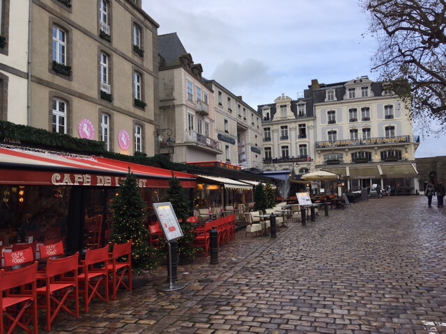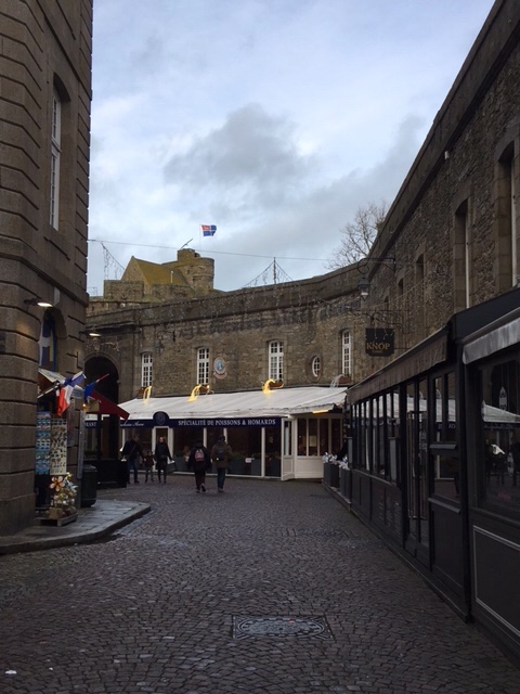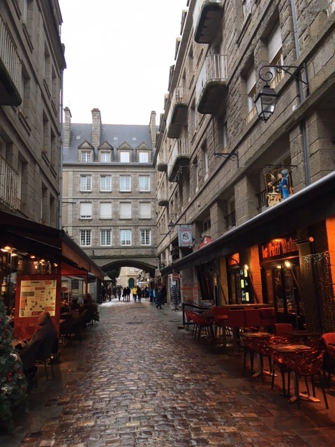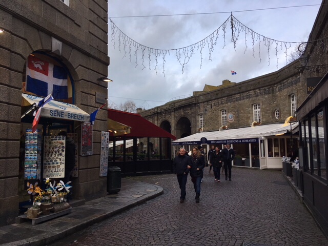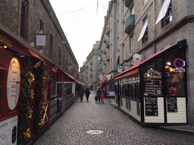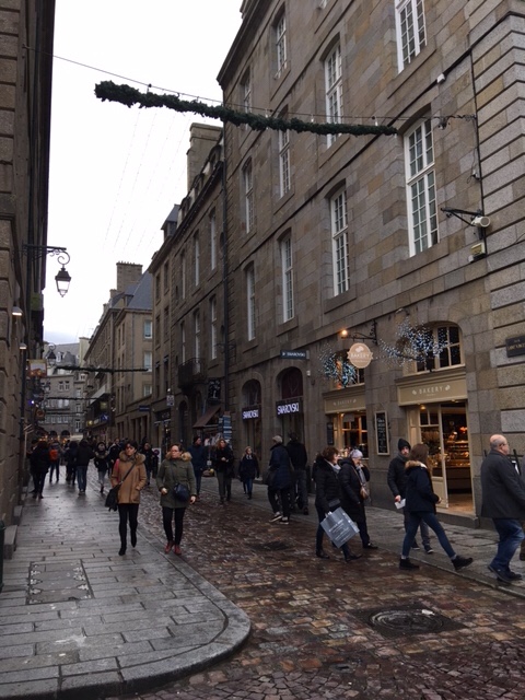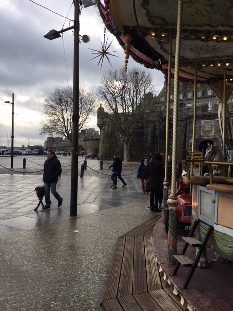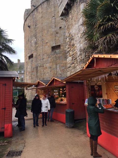 By this time the rain had stopped, which was handy and so we visited the St Malo Christmas market, which involved more vin chaud, as we looked around the usual stalls. We then took a stroll around many of the back streets, returning to the always buzzing main street, then back to the main gate. After another vin chaud and quick look at the outside ice rink, we were on our way again.