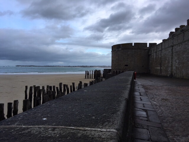 It was a particularly windy and rainy night, with the van rocking at times as our sheltered spot was discovered by the wind as it had changed direction. We woke to much improved sunny weather and double-digit temperatures. After the obligatory croissant and coffee, plus blogging, we thought we’d spend some time in St Malo, a lovely place to visit, but one we do often overlook as we’re either in a hurry to drive South when we arrive there on the ferry, or we’re in a hurry to catch the ferry home.