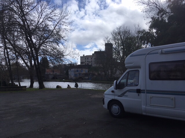 • Day 1 – Made good progress South, then took a sudden executive decision to head across the Dordogne for a change of scenery. Completely coincidentally found ourselves outside the chateau in Charras which was where we stayed on our first ever French holiday as a family of 4. How strange was that? Kept on driving and overnighted at the beautiful town of Bourdeilles, right next to the river