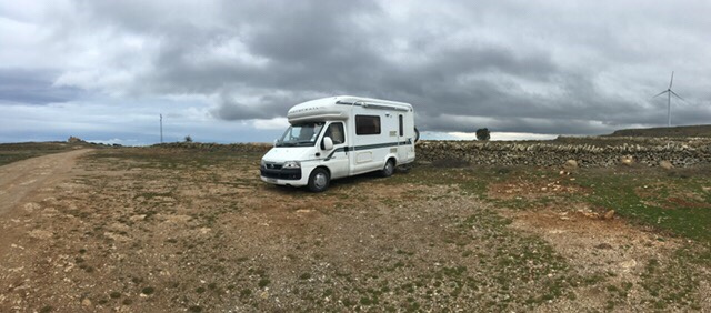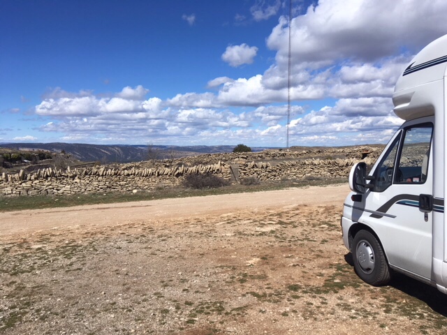 As for our final place for the night, I thought we’d try out a Park4night near Castellfort at the parking area for l’Ermite Sant Père. It’s a high and exposed spot. It’s great up here, at one with nature and the mountains in the distance, and we have it all to ourselves.