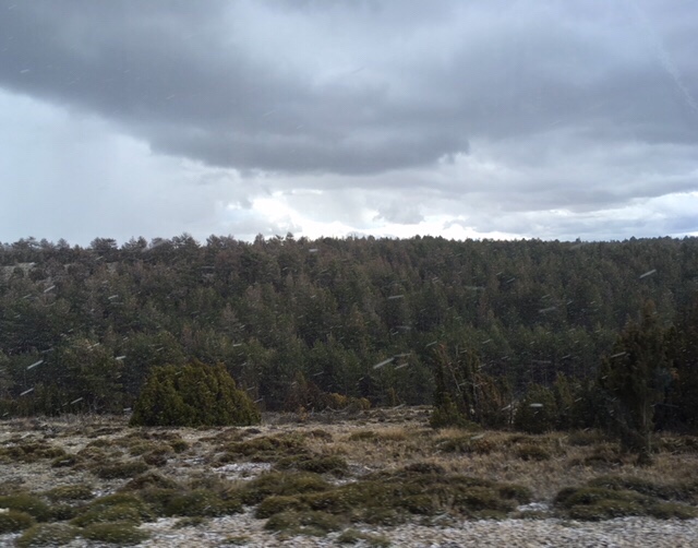 After a beautifully peaceful night, we were going to have a leisurely walk up there in the sunshine. Then, seemingly from nowhere, snow began to fall, and not keen to be caught out in the mountains we decided to head off smartish, especially knowing that today we were due for toilet emptying etc, plus would likely want to top up our fresh water, LPG, and diesel.