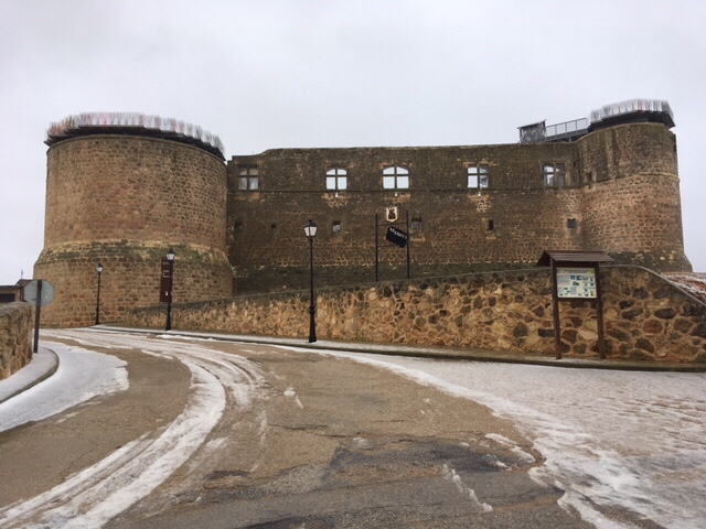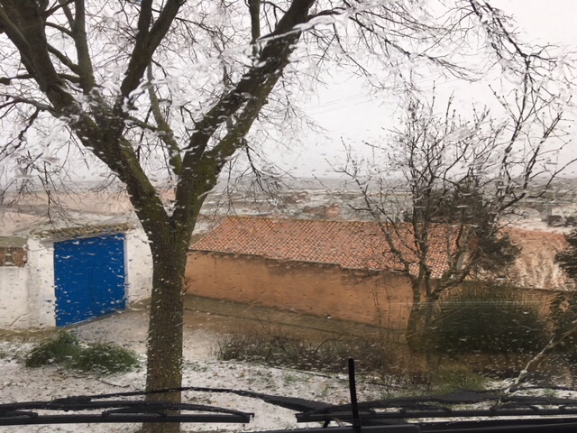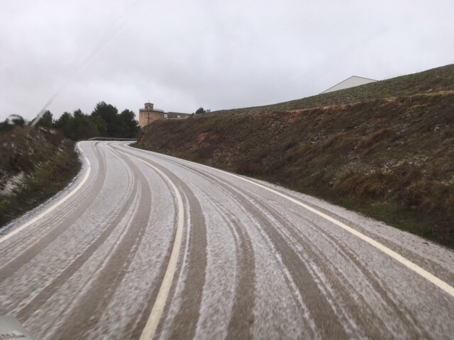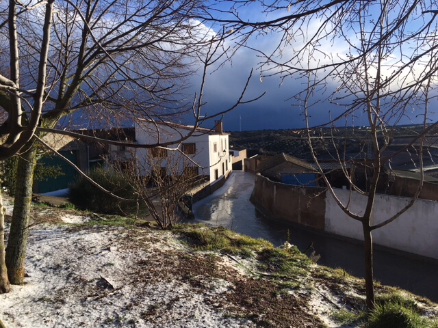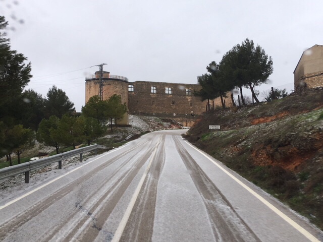 We took a detour into the larger town of Cuenca, where by now it was just torrential rain, rather than snow. We took refuge in their Lidl, and imagined what delicacies we would need if we were snowed in for a prolonged period. So we filled our respective baskets with cakes, cava, cheese, bread, pasta, ice cream etc and then headed back into the deluge.
